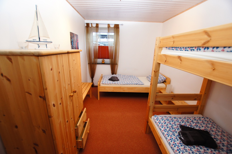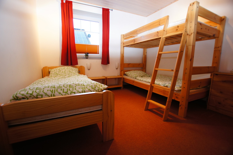 - SZ 2: Einzelbett (90 × 200 cm) + Etagenbett (90 × 200 cm) + festes Kinderbett